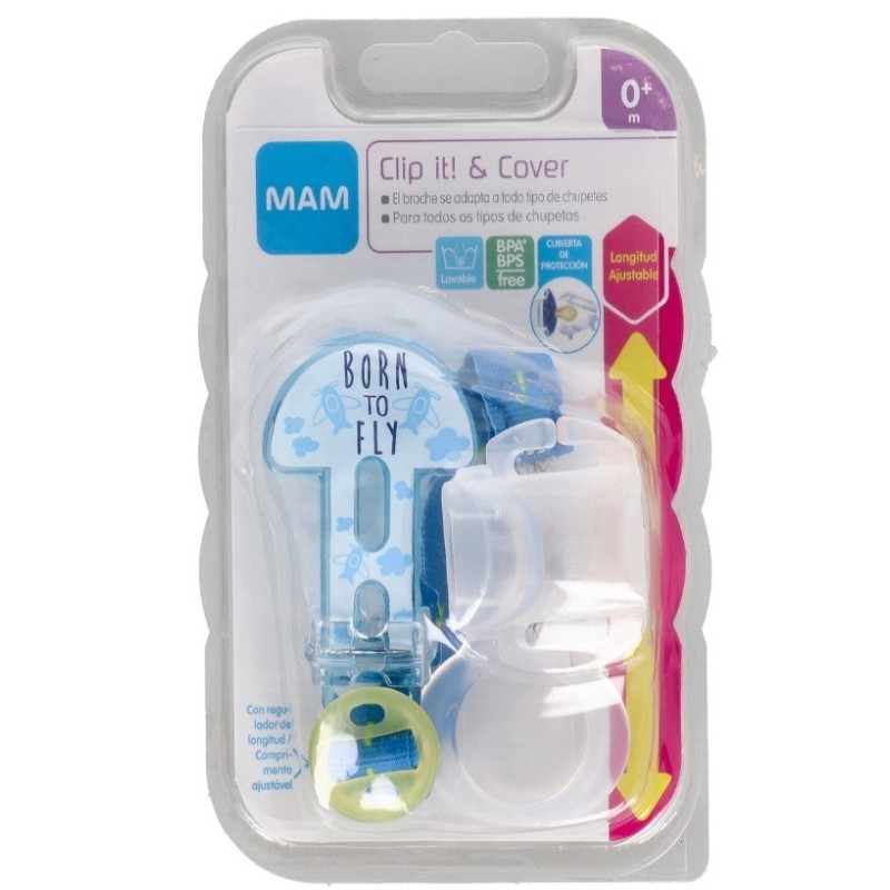 Cubierta de protección: mantiene las tetinas de los chupetes limpias y se adapta a todas las tetinas MAM. Se fija fácilmente al regulador de longitud.