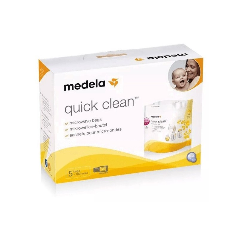 con las bolsas de esterilización para microondas quick clean de medela podrás desinfectar los accesorios para dar el pecho en unos tres minutos, de un modo más rápido y sencillo que hirviéndolos. Con ellas, se elimina el 99,9 % de las bacterias y gérmenes más nocivos. Beneficios de medela bolsa de esterilización para microondas quick clean: desinfección rápida y segura de los accesorios de lactancia para que tu bebé esté sano ahorran espacio: pequeñas y fáciles de guardar fáciles de usar: solo necesitas un microondas y agua reutilizables: te ahorran dinero y respetan el medio ambiente